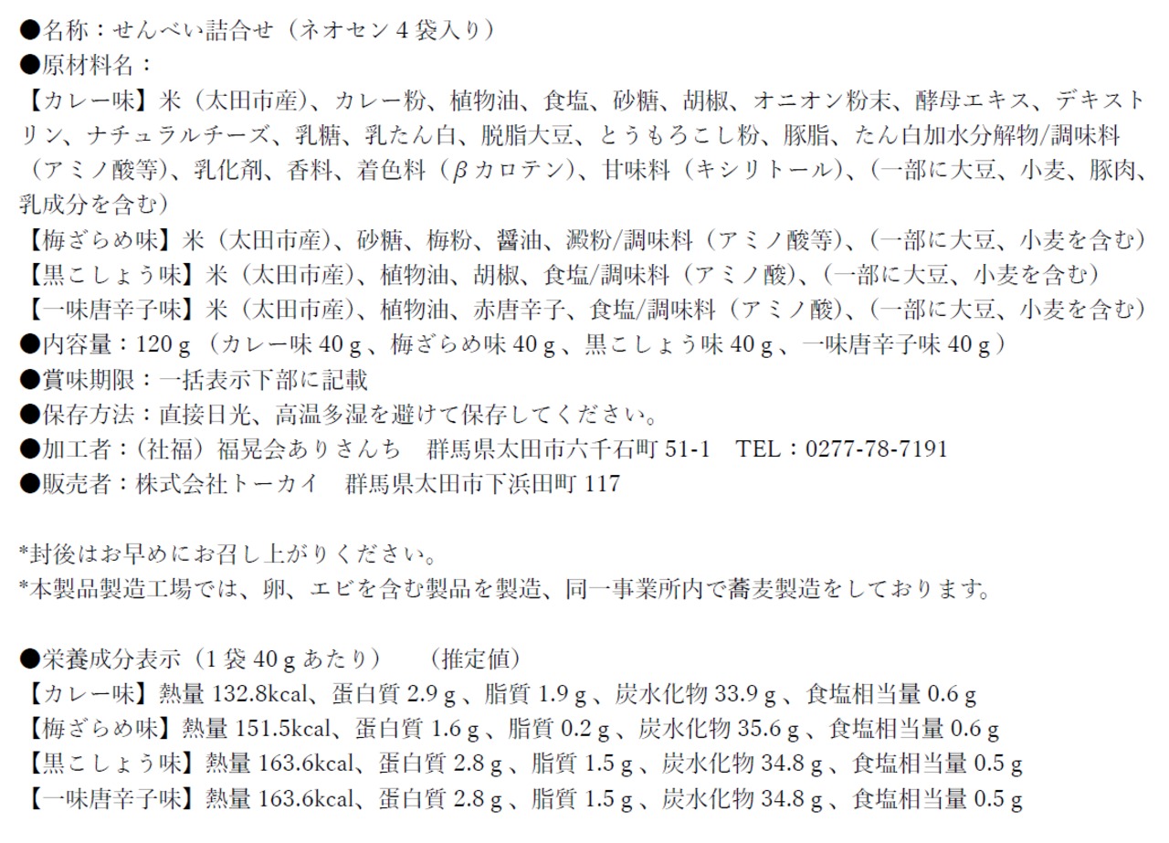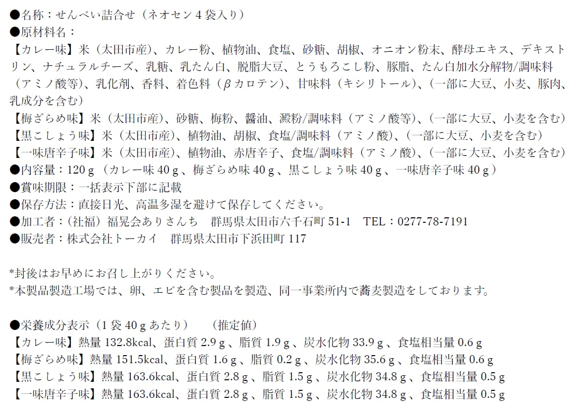太田市の美味しいお米を使用し、風味豊かでパリッとした食感が特徴。おやつや手土産に最適な一品です!